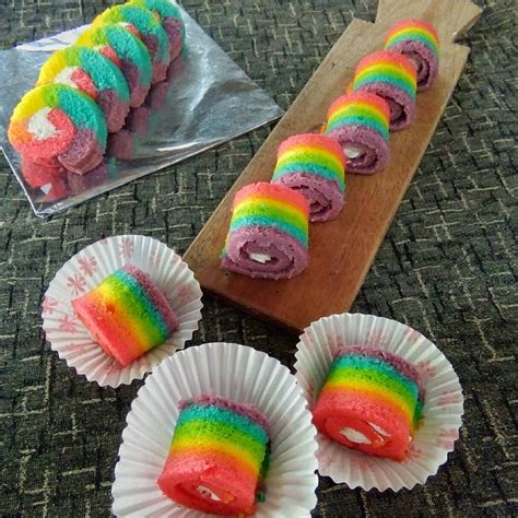 Source: www.resepkekinian.com Check Details Padahal mini roll rainbow cake yang enak harusnya sih mempunyai aroma dan rasa yang dapat memancing. Segi 3 biru, diayak) bahan isi : Proses ini untuk cake yang akan di lapisi butter ya bunda. Contact support dapur nana wa : Hiasan rainbow cake kukus mini :